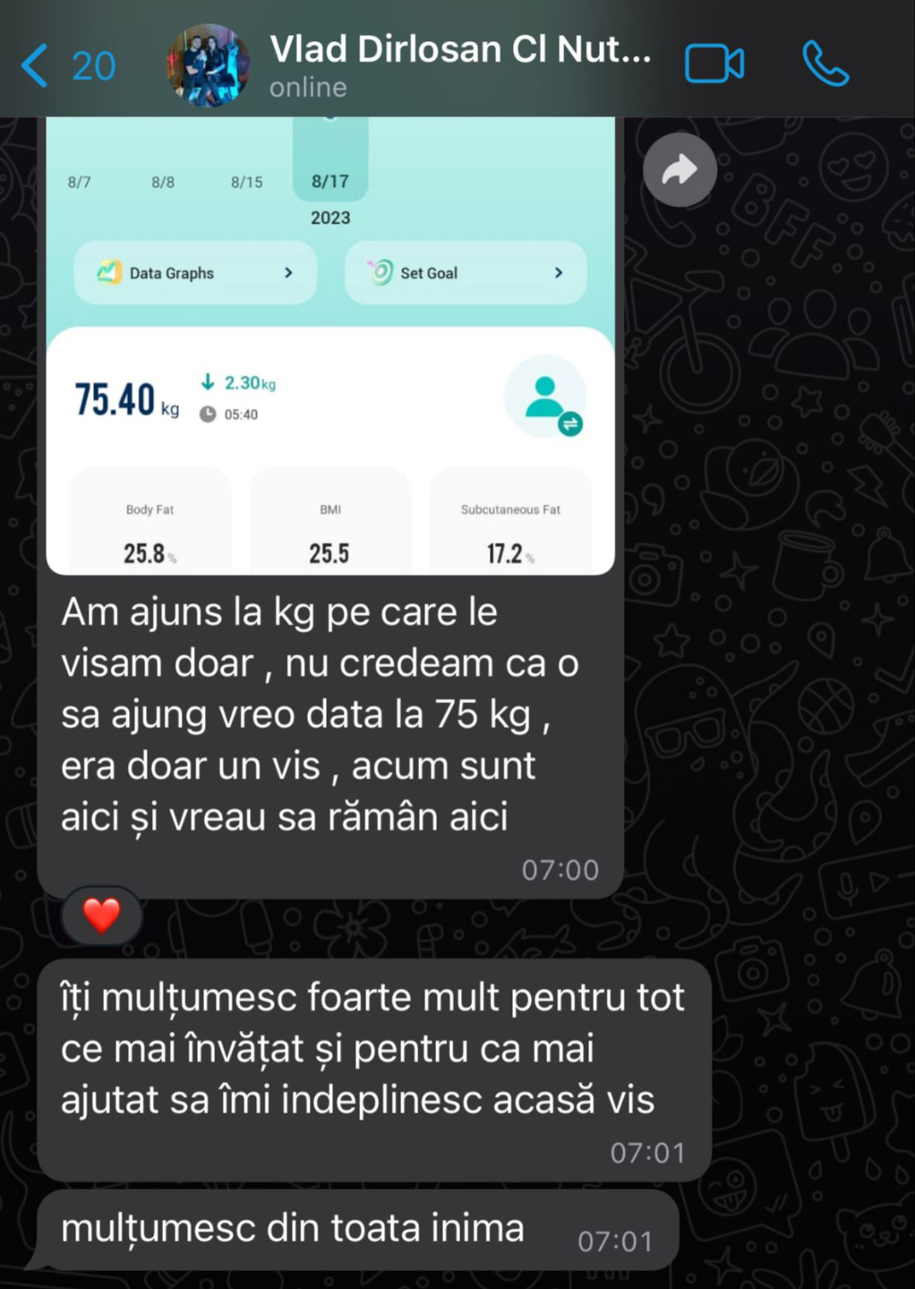 Dacă ai respectat toate indicațiile noastre, ți-ai îndeplinit toate taskurile, ți-ai încărcat toate pozele cu ce mănânci, ți-ai notat tot ce ai făcut în aplicație (antrenament, nutriție, obiceiuri)..